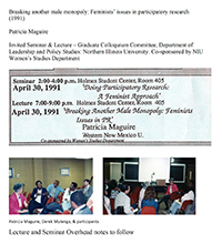 Invited Seminar & Lecture – Graduate Colloquium Committee, Department of Leadership and Policy Studies: Northern Illinois University. Co-sponsored by NIU Women’s Studies Department.